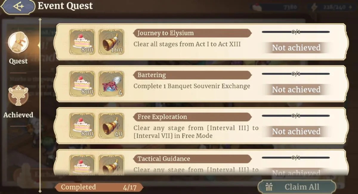 This is where you will spend your stamina while the event is active and your stamina potions (if you saved them). You have a couple of weeks to farm currency and use it on the shop, but it’s worth it considering everything you can buy.